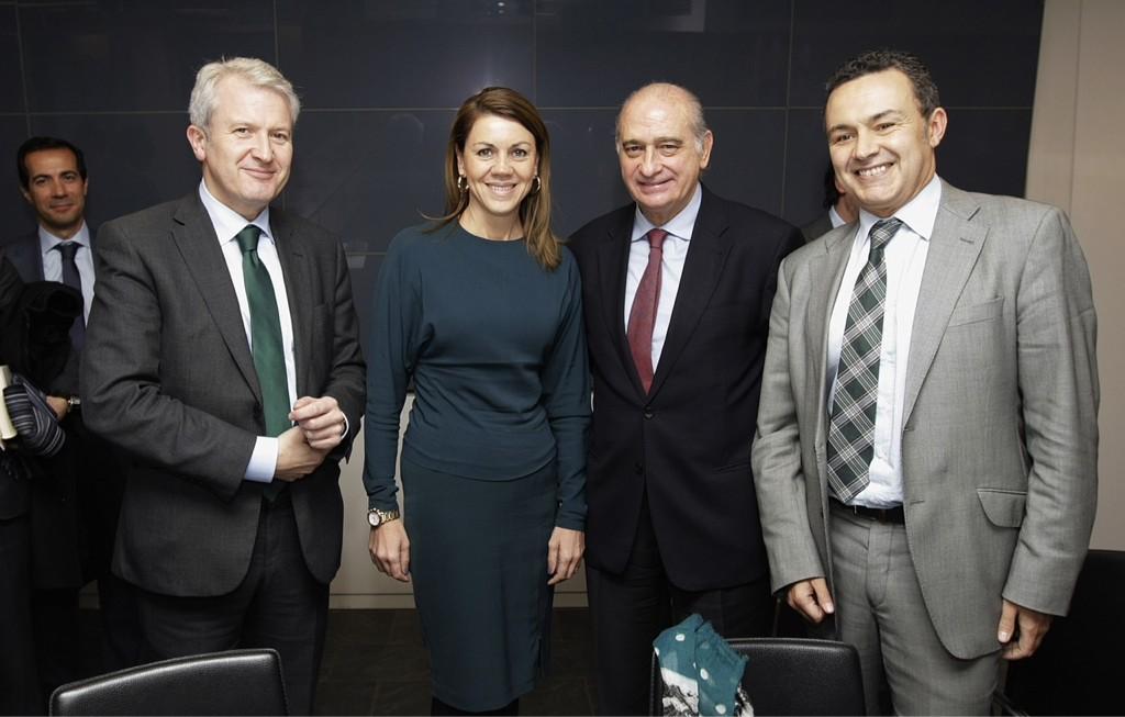 FOTO TW; Los políticos riojanos posan junto a la portavoz del ejecutivo, María Dolores de Cospedal y el ministro Fernández Díaz.